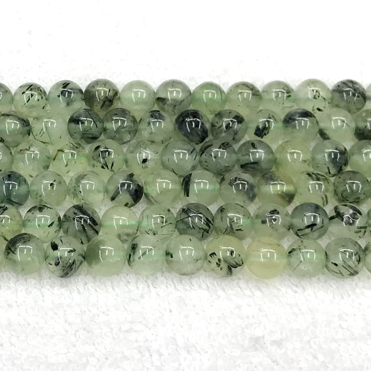 CUQ284 Green Rutilated Quartz Beads Smooth Round 6mm 15.5" Strand