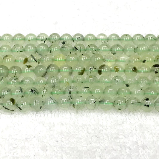 CUQ272 Green Rutilated Quartz Beads Smooth Round 6mm 15.5" Strand