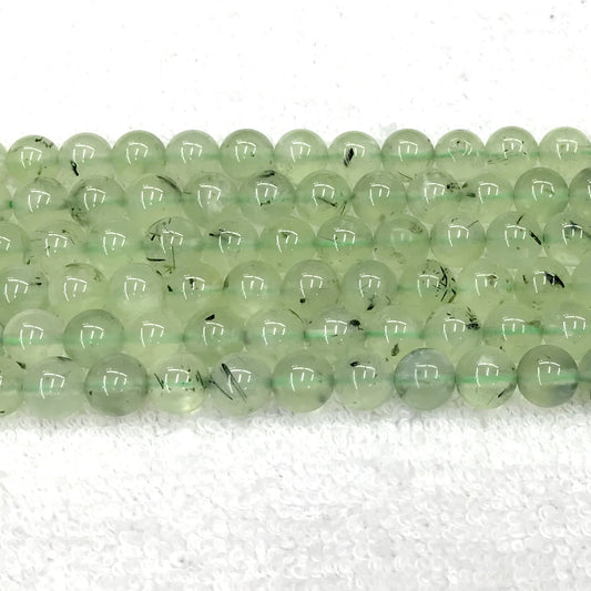 CUQ273 Green Rutilated Quartz Beads Smooth Round 8mm 15.5" Strand