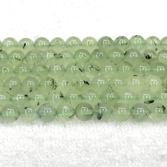 CUQ274 Green Rutilated Quartz Beads Smooth Round 10mm 15.5" Strand