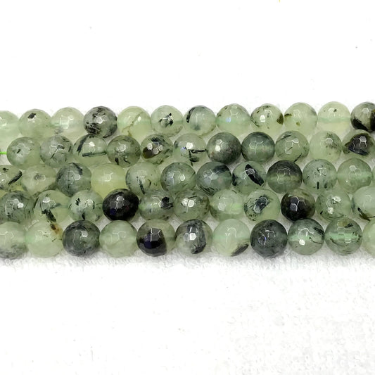 CUQ291 Green Rutilated Quartz Beads Faceted Round 8mm 15.5" Strand