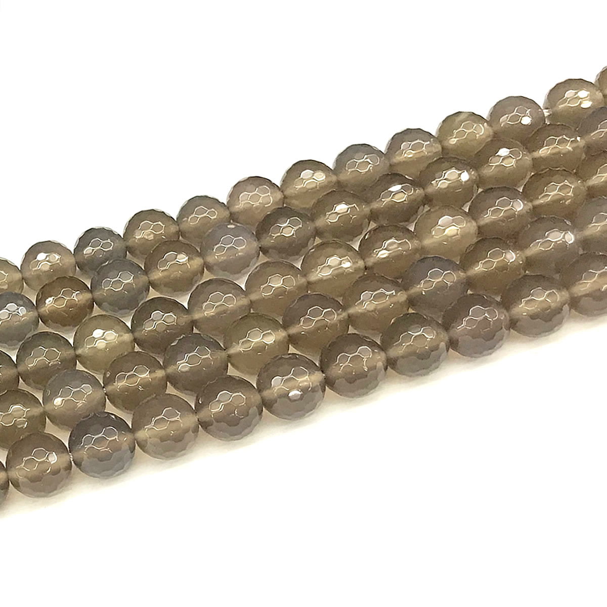 CAG1098 Grey Agate Beads Faceted Round 10mm 15" Strand