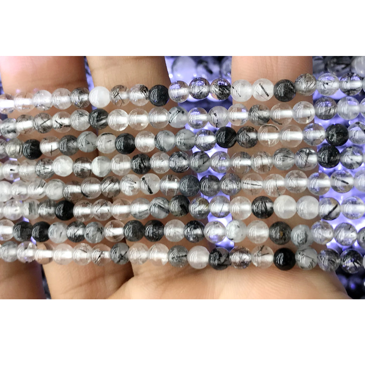 CAG233 Black Rutilated Quartz Beads Smooth Round 4mm 15.5" Strand