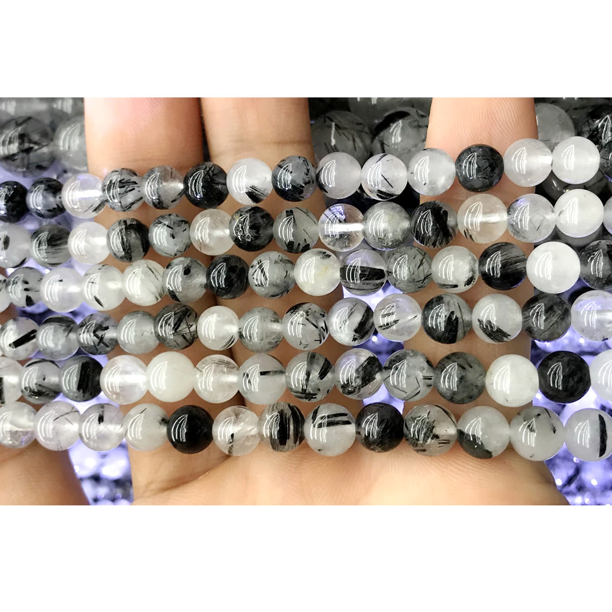 CAG234 Black Rutilated Quartz Beads Smooth Round 6mm 15.5" Strand