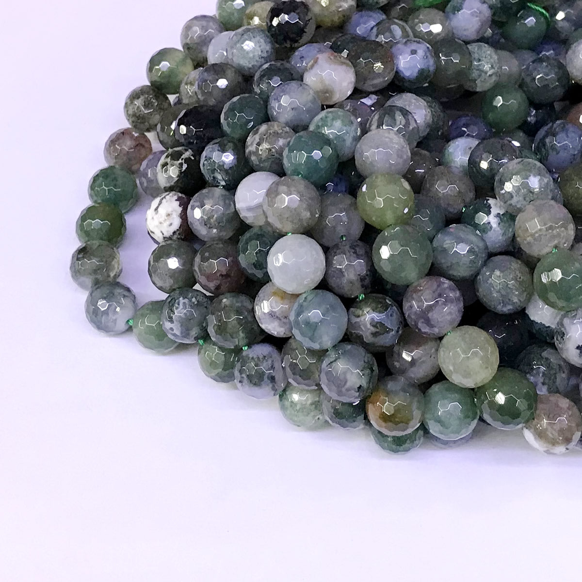 CAG52 Moss Agate Beads Faceted Round 10mm 15" Strand