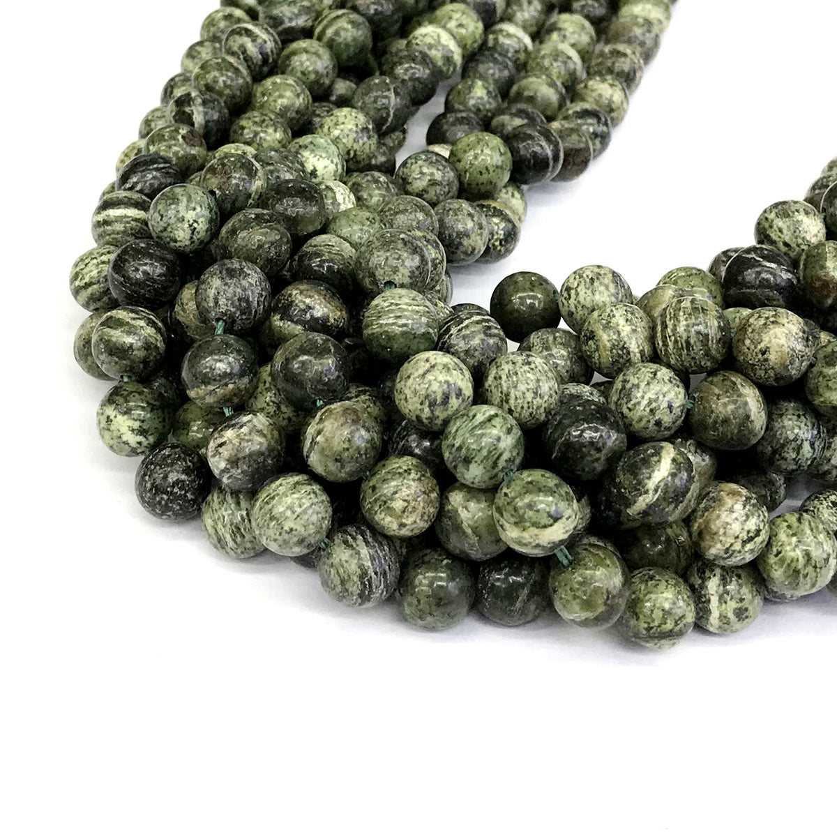 CJP375 Green Zebra Jasper Beads Smooth Round 8mm 15" Strand