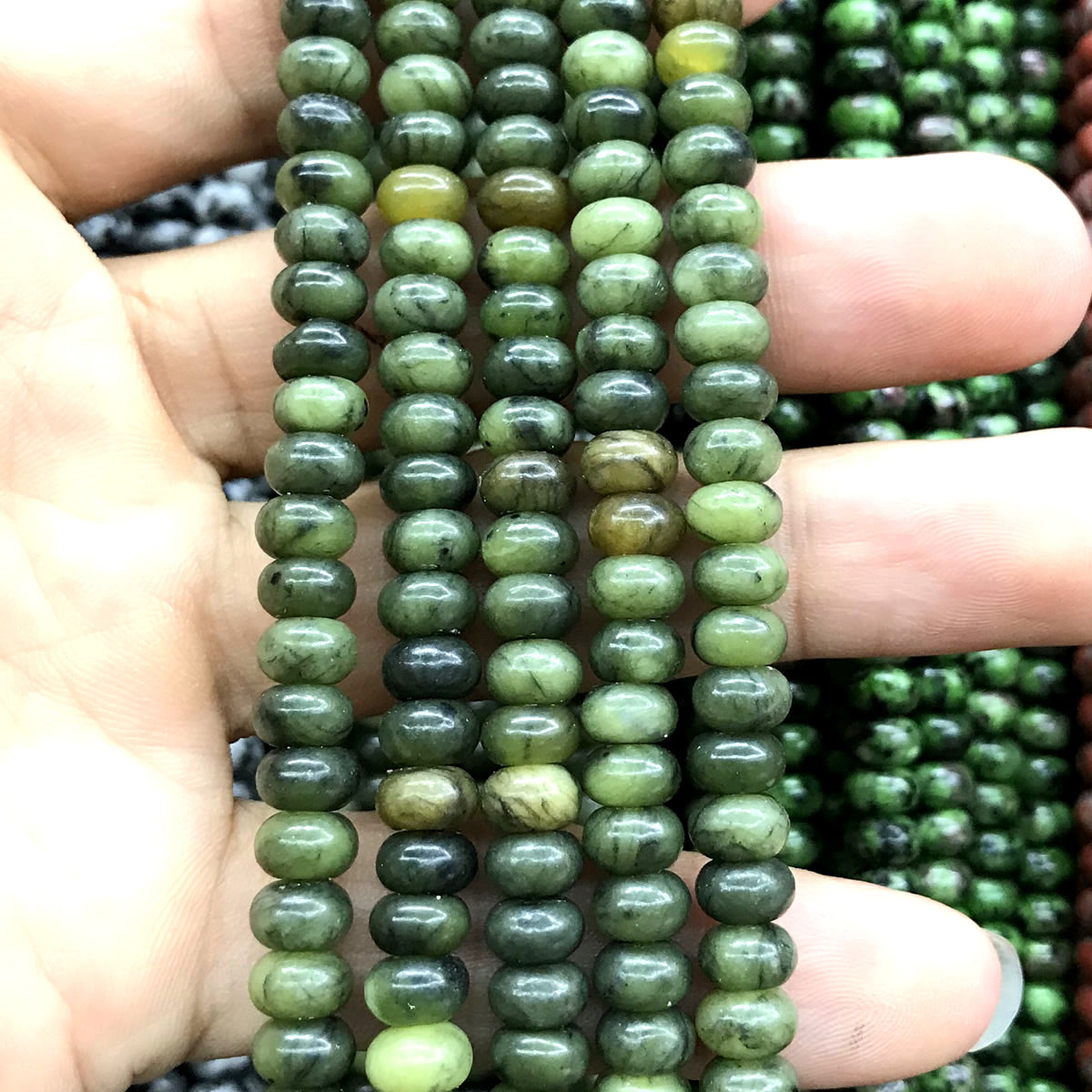 CRB216 Canadian Jade Beads Smooth Rondelle 4x6mm 15" Strand