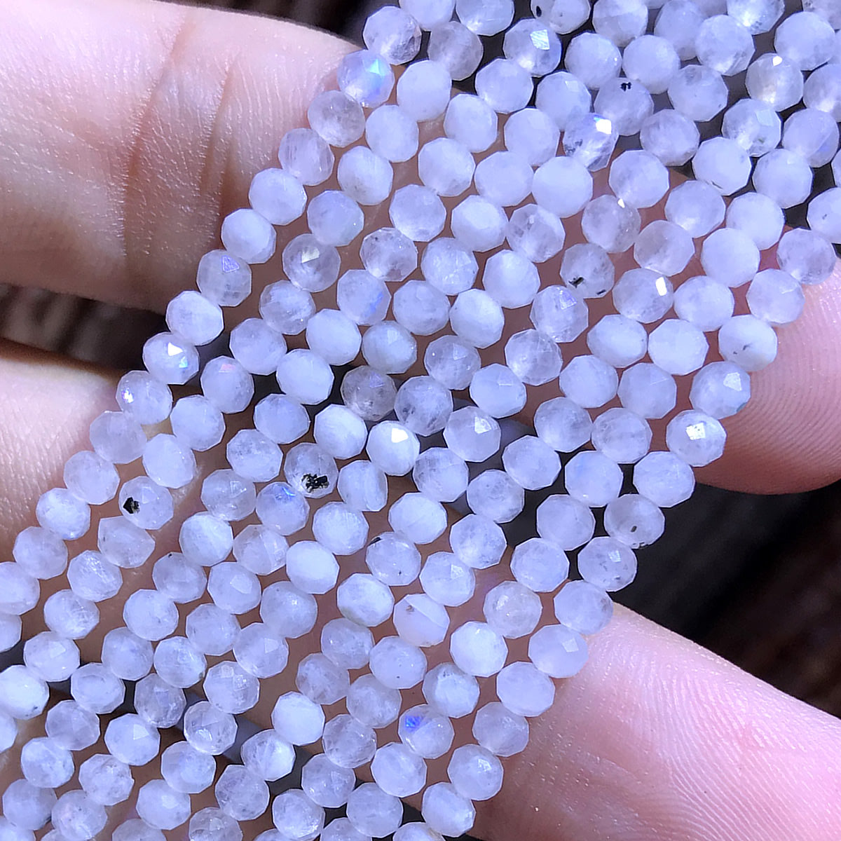 CRB375 White Moonstone Beads Faceted Rondelle 3x4mm 15" Strand