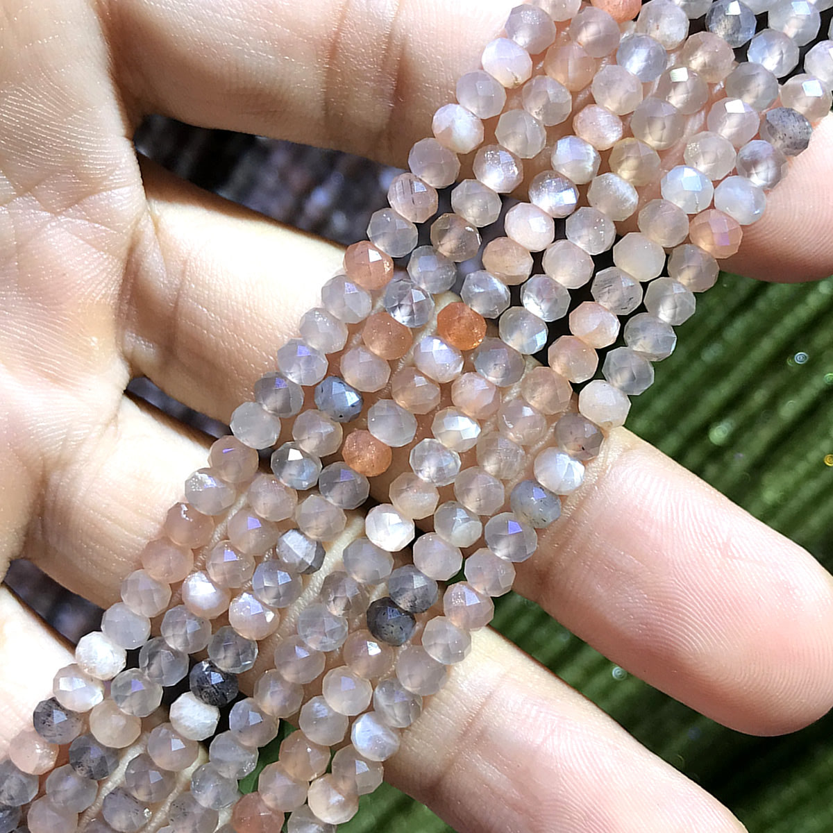 CRB379 Rainbow Moonstone Beads Faceted Rondelle 3x4mm 15" Strand