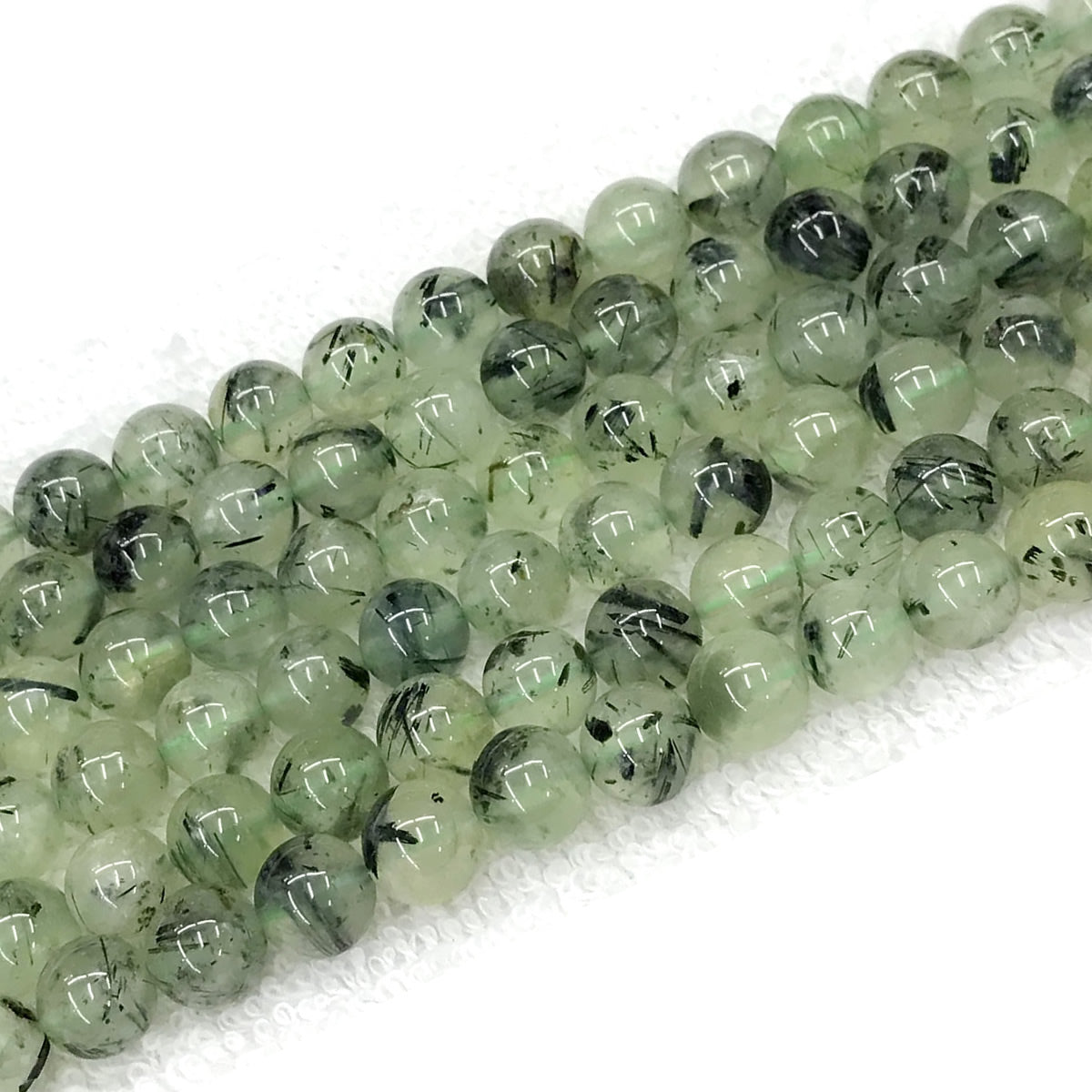 CUQ274 Green Rutilated Quartz Beads Smooth Round 10mm 15.5" Strand