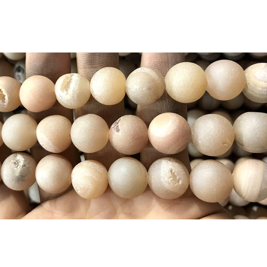 CAG371 Druzy Agate Beads Electroplated Matte Round 14mm 15" Strand