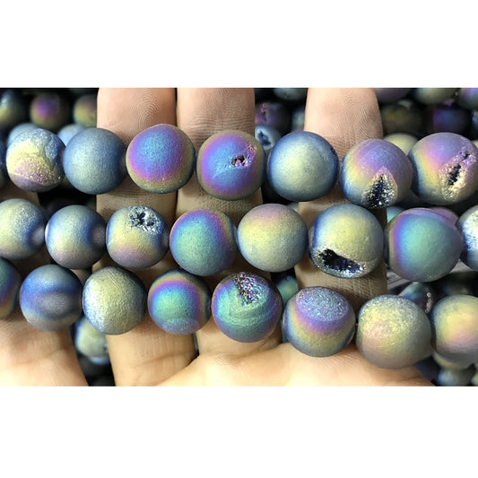 CAG368 Druzy Agate Beads Electroplated Matte Round 14mm 15" Strand