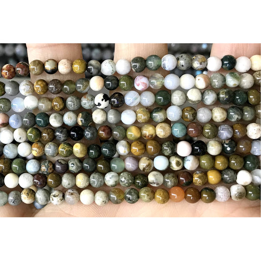 CAG406 Ocean Agate Beads Smooth Round 4mm 15.5" Strand