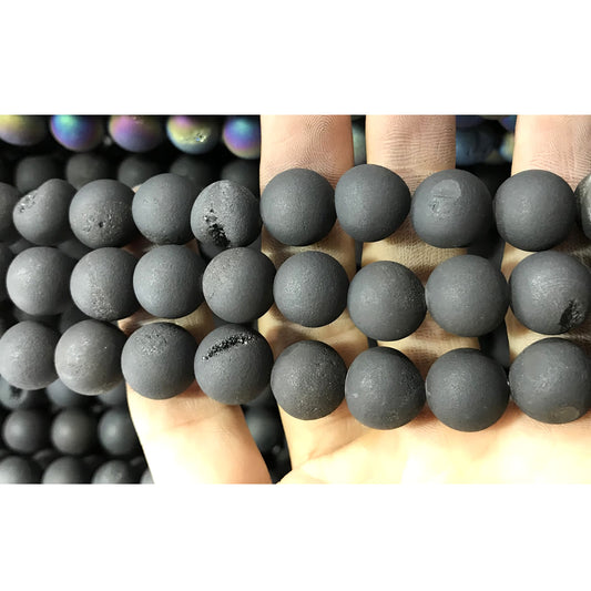 CAG365 Druzy Agate Beads Electroplated Matte Round 14mm 15" Strand