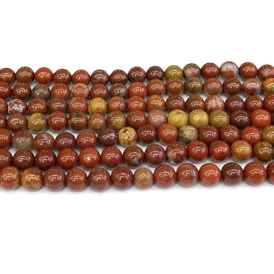 CAG260 Red Moss Agate Beads Smooth Round 8mm 15" Strand