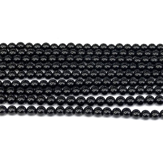 CAG283 Black Agate Beads Smooth Round 6mm 15" Strand