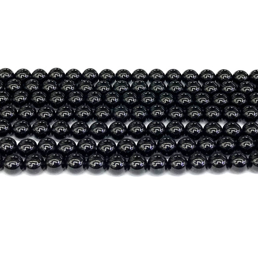 CAG284 Black Agate Beads Smooth Round 8mm 15" Strand