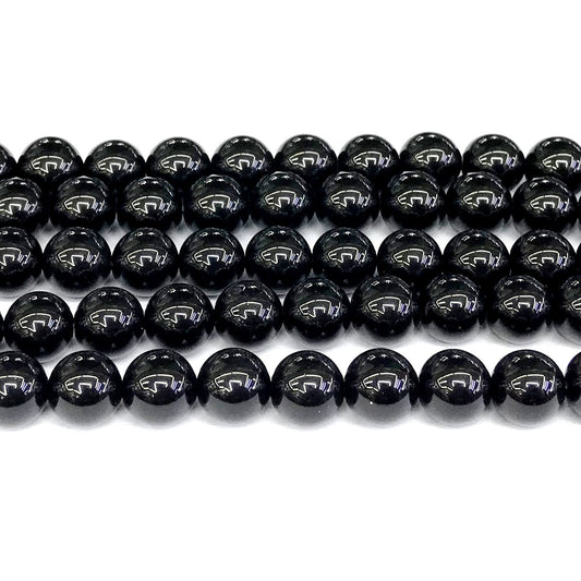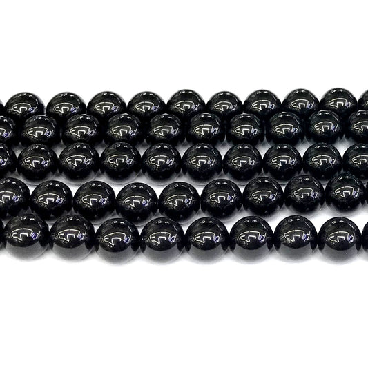 CAG285 Black Agate Beads Smooth Round 10mm 15" Strand