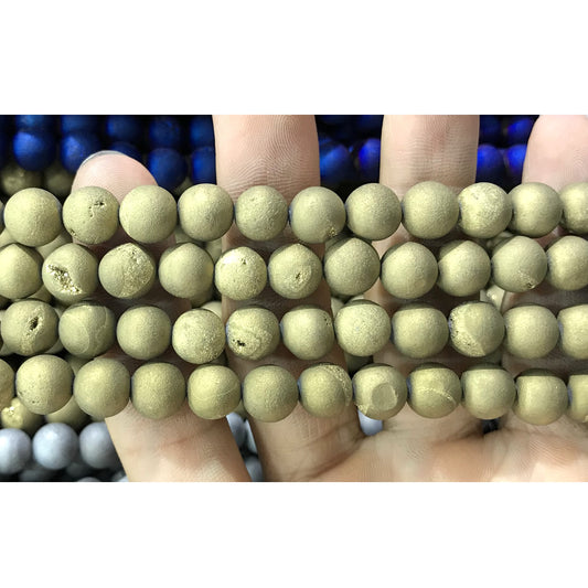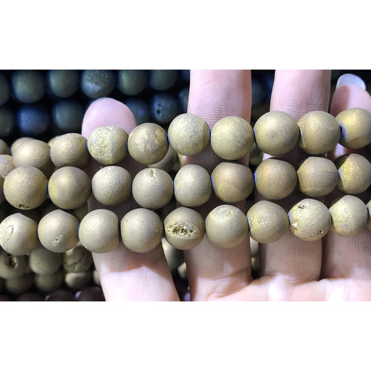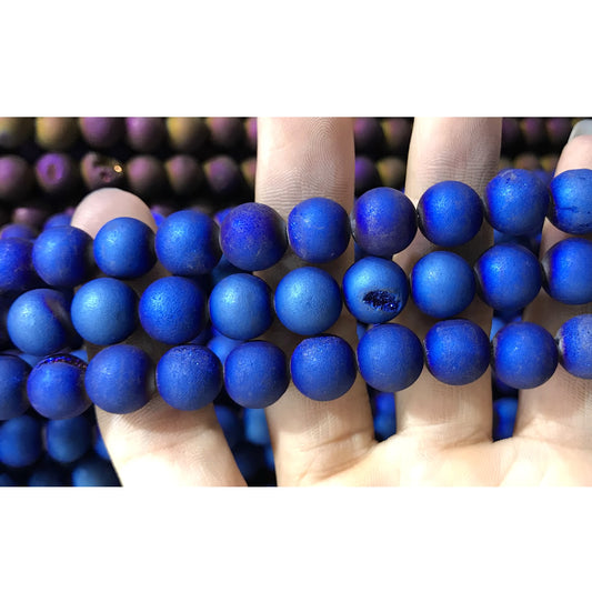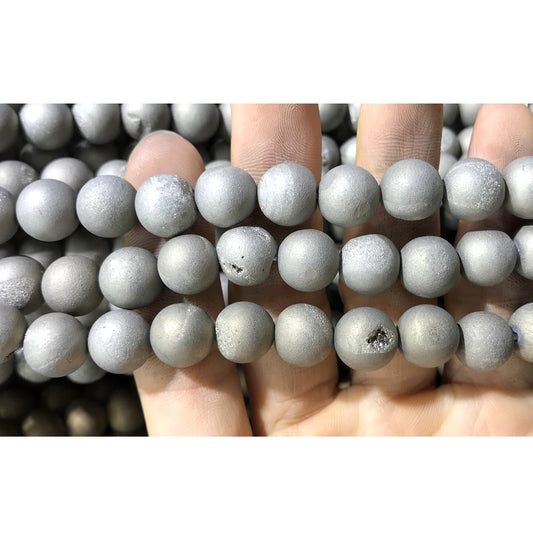 CAG340 Druzy Agate Beads Electroplated Matte Round 10mm 15" Strand
