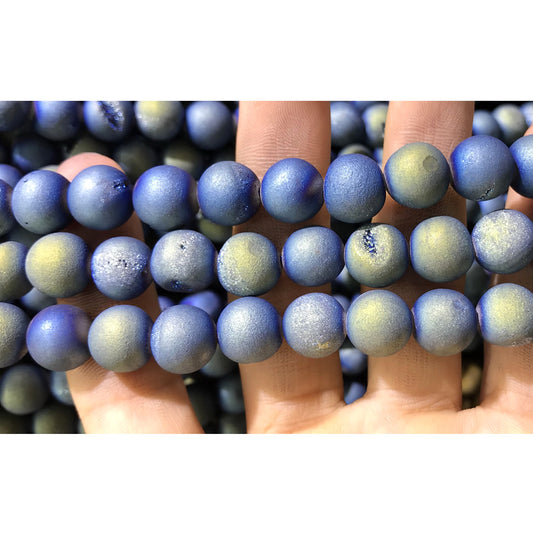 CAG341 Druzy Agate Beads Electroplated Matte Round 10mm 15" Strand