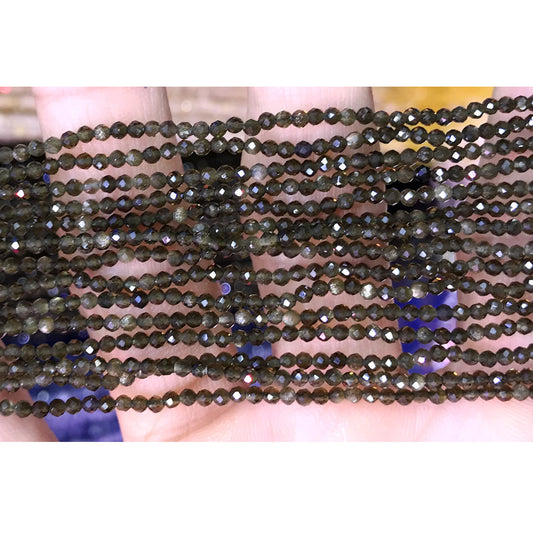 CTG107 Golden Obsidian Beads Faceted Round 2mm 15" Strand