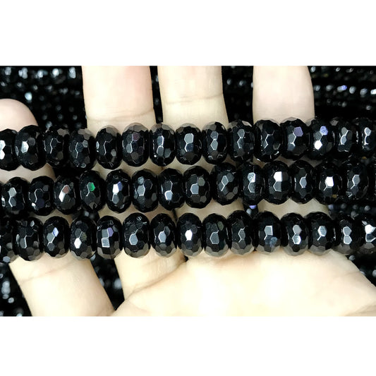 CAG525 Black Agate Beads Faceted Rondelle 6*10mm 15" Strand