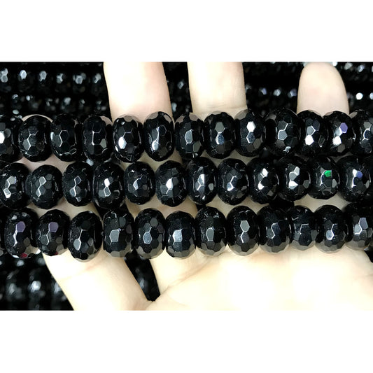 CAG526 Black Agate Beads Faceted Rondelle 8*12mm 15" Strand
