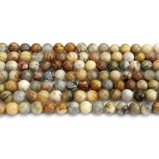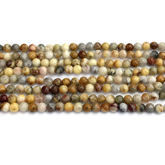 CAG531 Yellow Crazy Lace Agate Beads Smooth Round 6mm 15" Strand