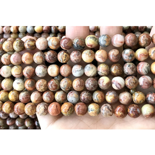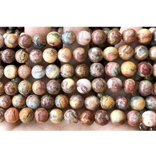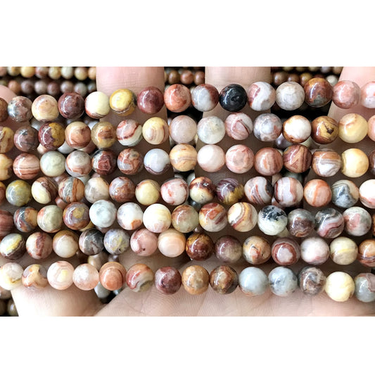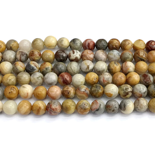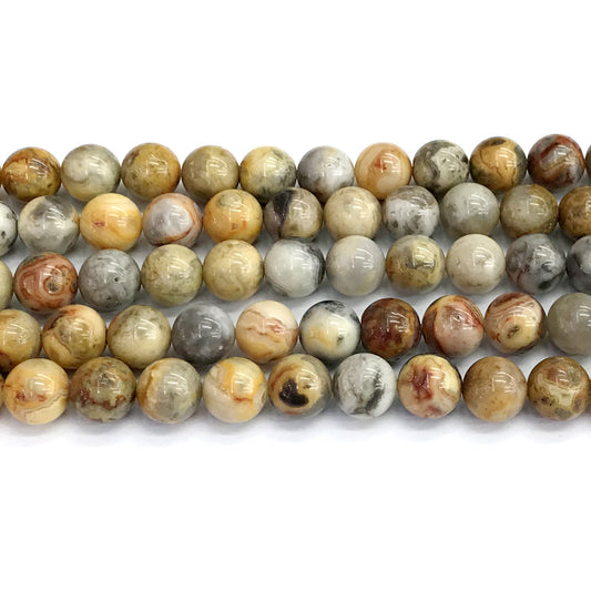 CAG532 Yellow Crazy Lace Agate Beads Smooth Round 8mm 15" Strand