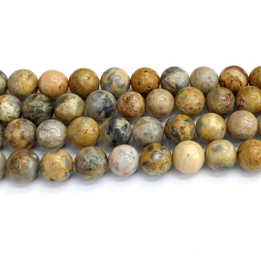 CAG533 Yellow Crazy Lace Agate Beads Smooth Round 10mm 15" Strand