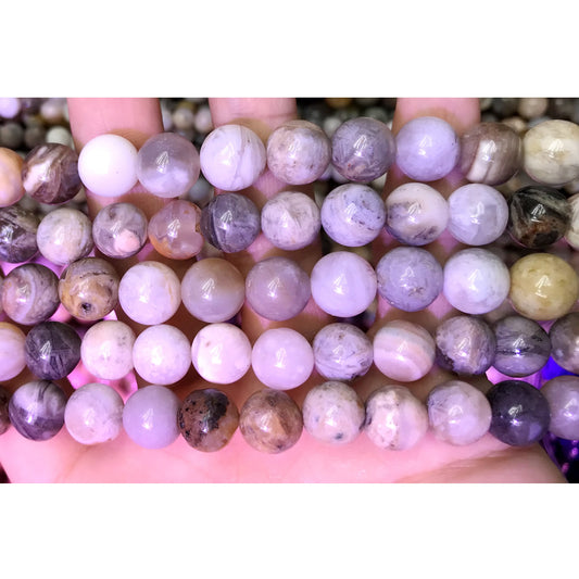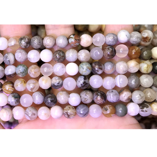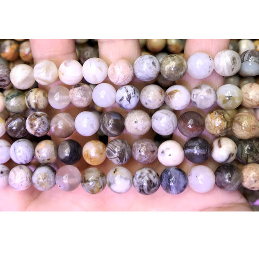 CAG540 Bamboo Leaf Agate Beads Smooth Round 8mm 15" Strand