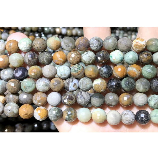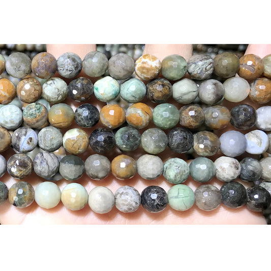 CAG554 Ocean Agate Beads Faceted Round 8mm 15.5" Strand