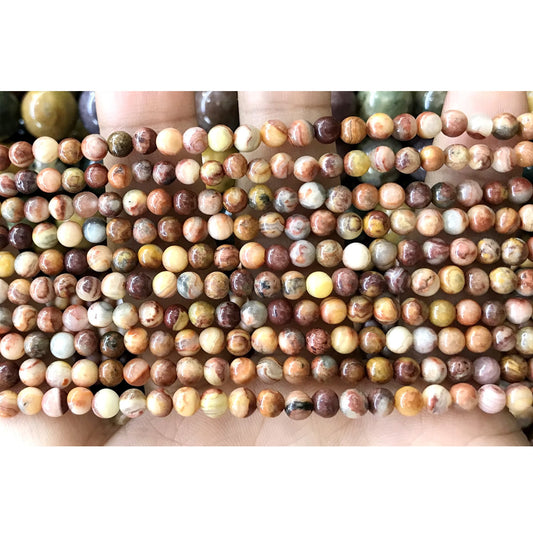 CAG530 Yellow Crazy Lace Agate Beads Smooth Round 4mm 15" Strand