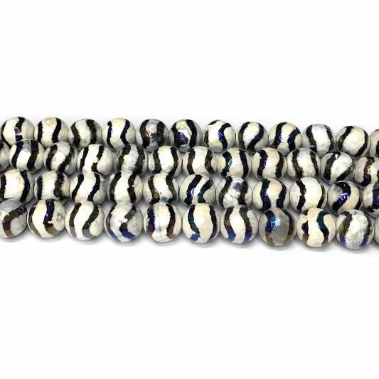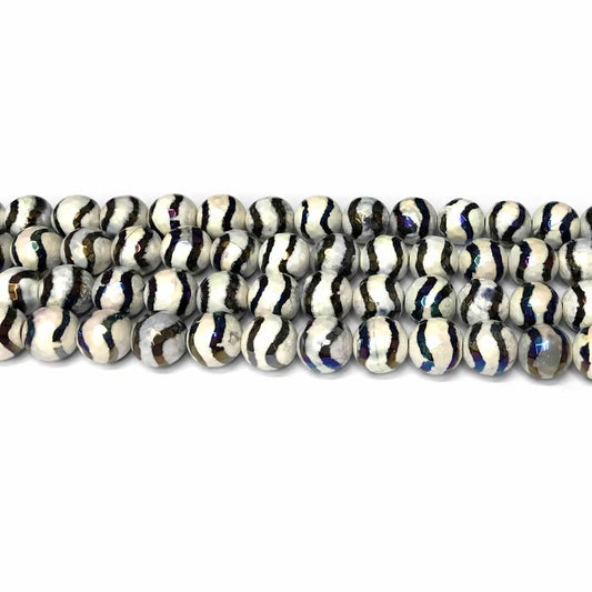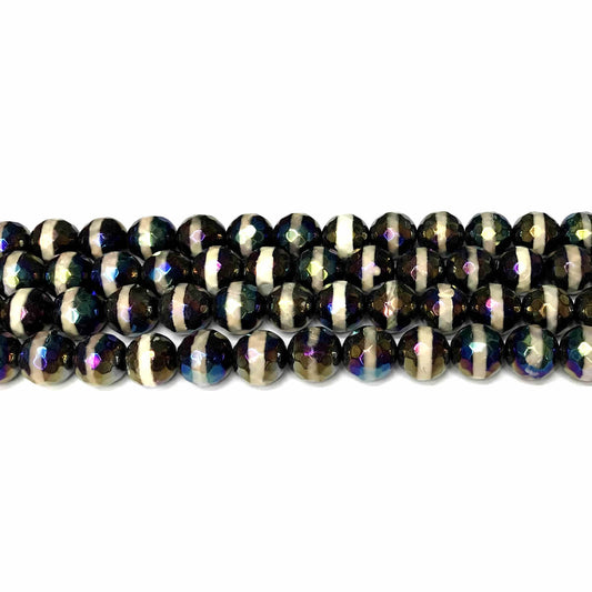 CAG751 Tibetan Agate Beads AB-Color Electroplated Faceted Round 10mm 15" Strand