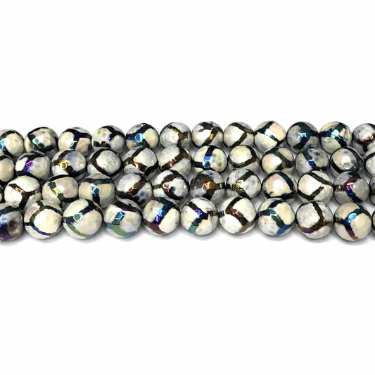 CAG740 Tibetan Agate Beads AB-Color Electroplated Faceted Round 8mm 15" Strand