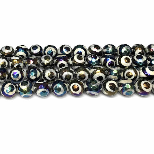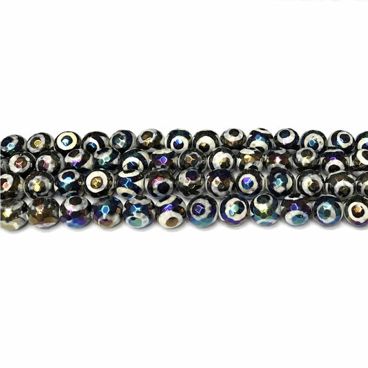 CAG750 Tibetan Agate Beads AB-Color Electroplated Faceted Round 8mm 15" Strand