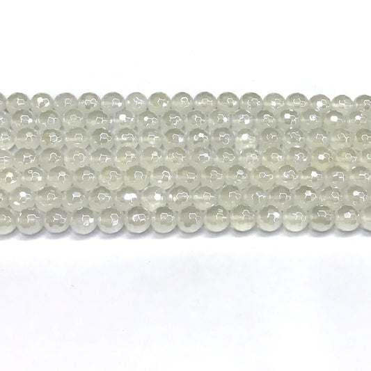 CAG760 White Agate Beads Electroplated Faceted Round 6mm 15" Strand