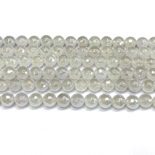 CAG761 White Agate Beads Electroplated Faceted Round 8mm 15" Strand