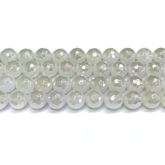 CAG762 White Agate Beads Electroplated Faceted Round 10mm 15" Strand