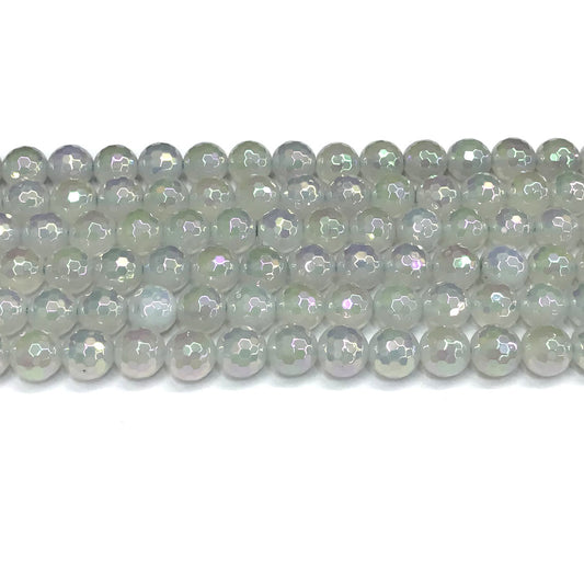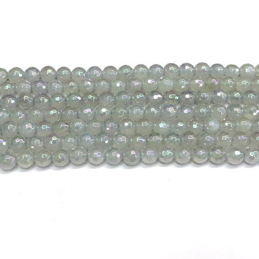 CAG766 White Agate Beads AB-color Electroplated Faceted Round 8mm 15" Strand