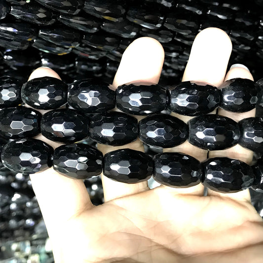 CAG766 Black Agate Beads Faceted Rice 13x18mm 15" Strand