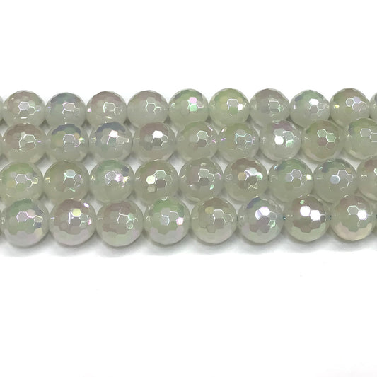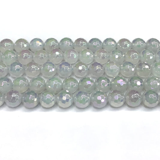 CAG767 White Agate Beads AB-color Electroplated Faceted Round 10mm 15" Strand