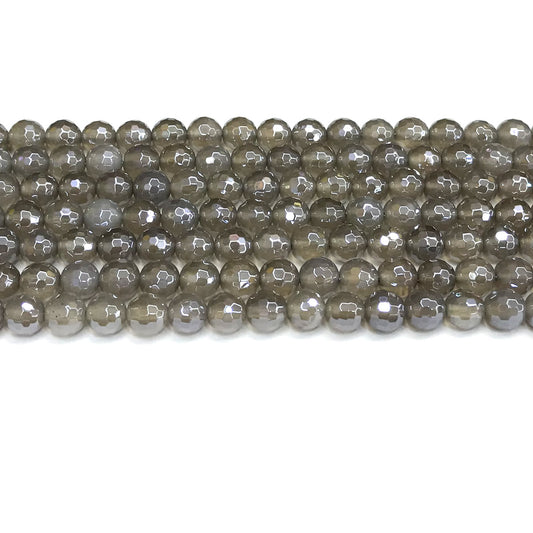 CAG770 Grey Agate Beads Electroplated Faceted Round 6mm 15" Strand