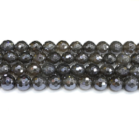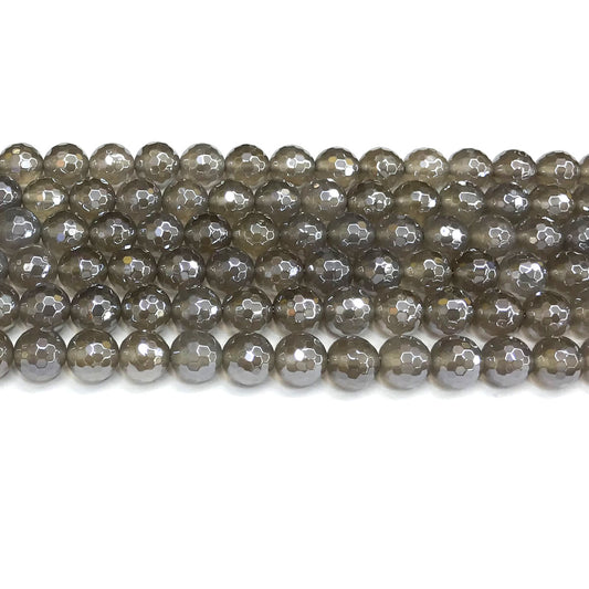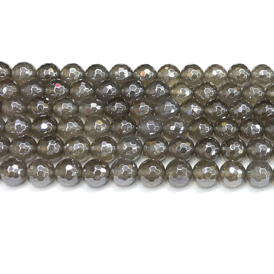 CAG772 Grey Agate Beads Electroplated Faceted Round 10mm 15" Strand