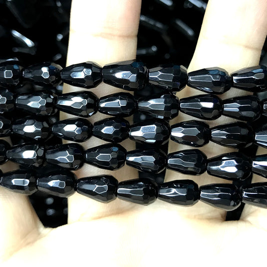 CAG774 Black Agate Beads Faceted Teardrop 8x16mm 15" Strand