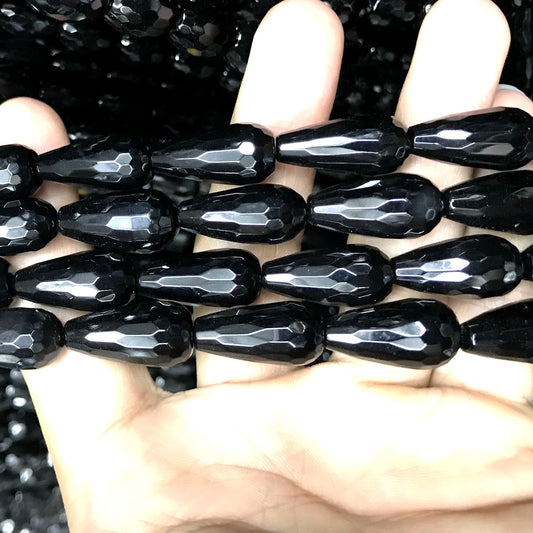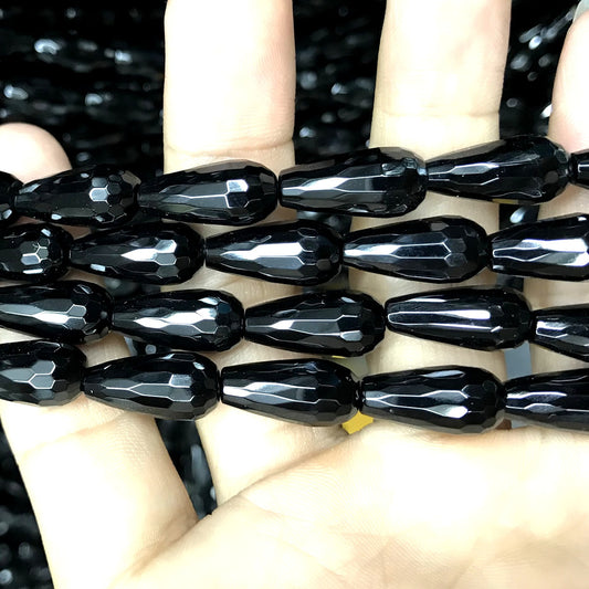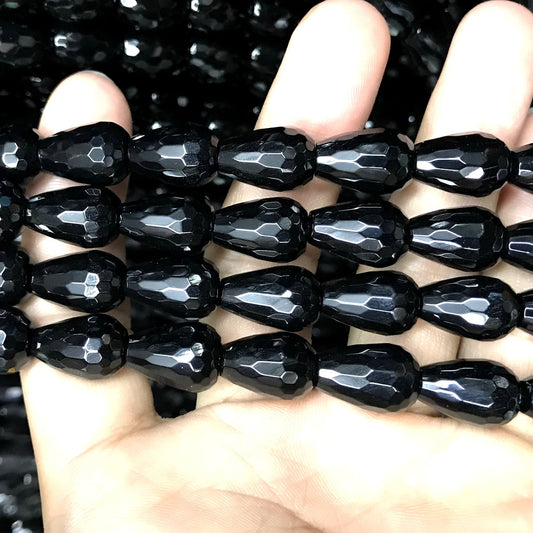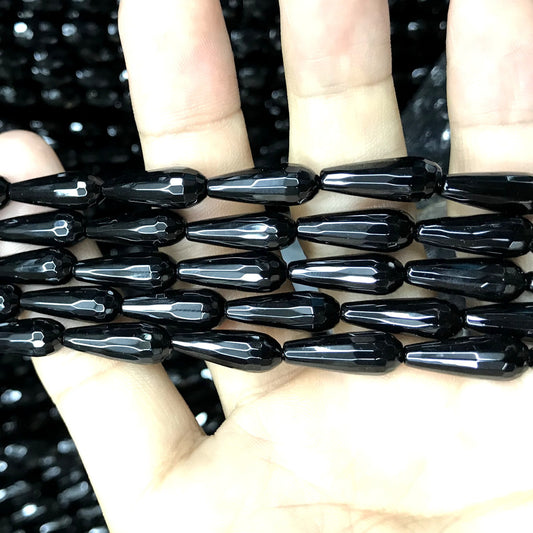 CAG777 Black Agate Beads Faceted Teardrop 10x20mm 15" Strand