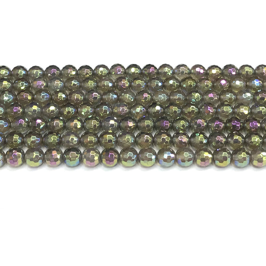 CAG775 Grey Agate Beads AB-color Electroplated Faceted Round 6mm 15" Strand