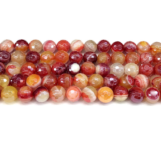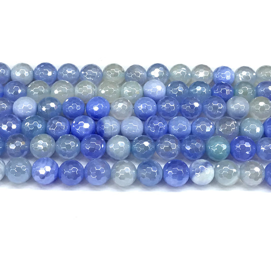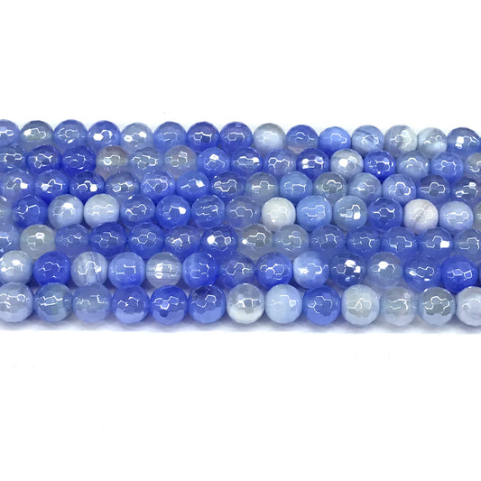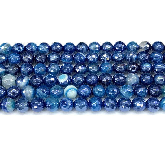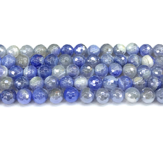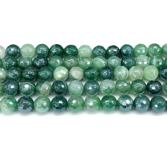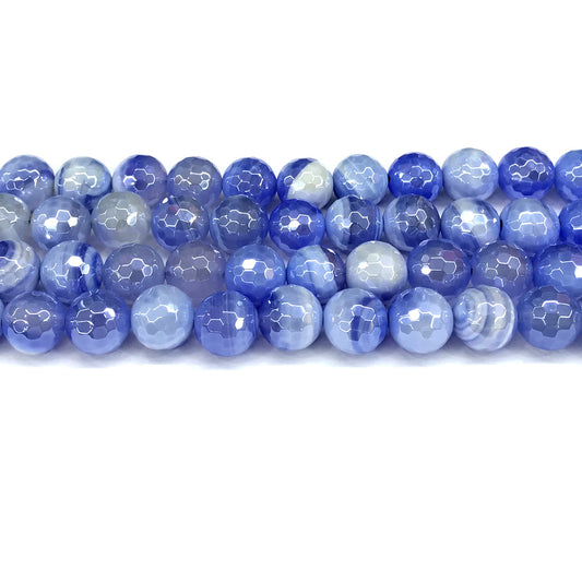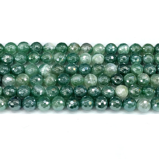 CAG841 Banded Agate Beads Electroplated Faceted Round 8mm 15" Strand