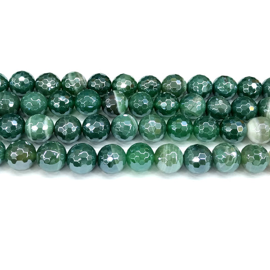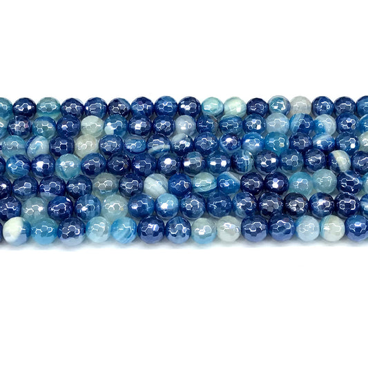 CAG830 Banded Agate Beads Electroplated Faceted Round 6mm 15" Strand