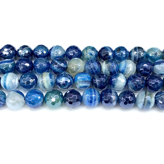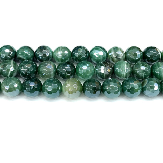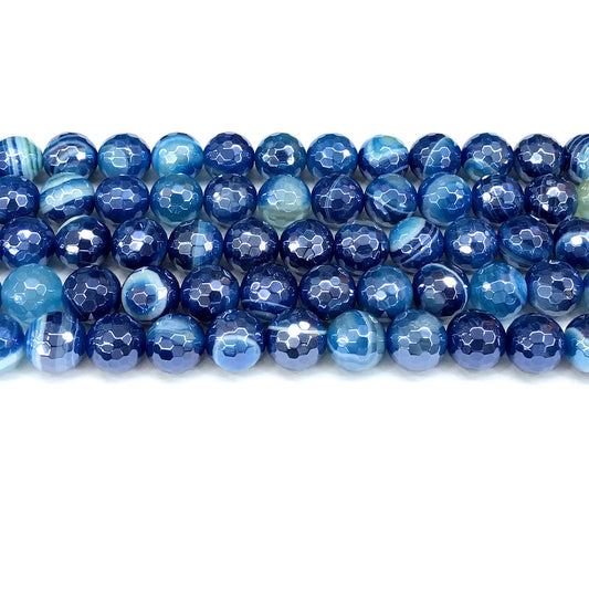 CAG832 Banded Agate Beads Electroplated Faceted Round 10mm 15" Strand